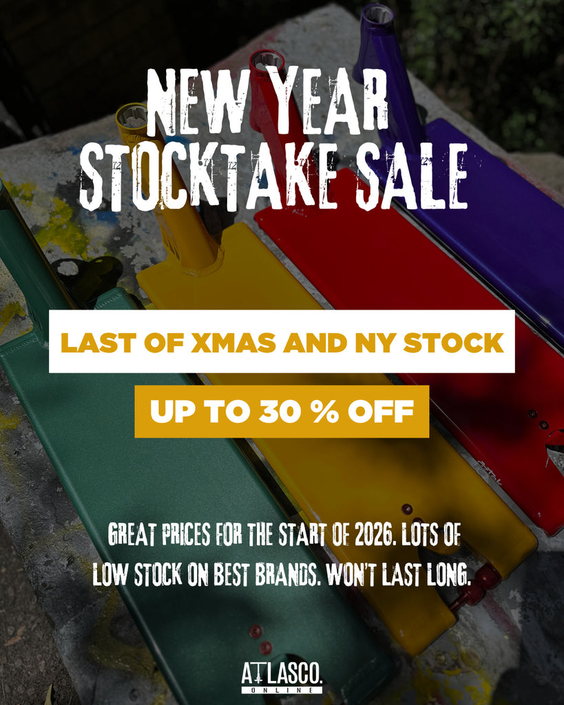 Save up to 50% off storewide across our huge range of scooter decks, bars, clamps, forks, apparel, exclusive custom completes and more, for a limited time only during our STOCKTAKE sale 😮 SHOP NOW 🔗